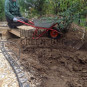 В ходе работ по благоустройству данного объекта при непосредственном участии заказчика были установлены отметки по нивелиру. С объекта было вывезено вручную более 100 м3 глинистой почвы. Новый плодородный грунт, включая песчаную подушку, был завезен, распланирован и послойно утрамбован вручную. Общий объем использованных грунтов составил более 250 м3. Далее была сделана финишная планировка под настил рулонного газона. На видовых местах участка финишная планировка переделывалась неоднократно, так как заказчик очень серьезно подошел к планировке, осматривая свой участок с разных сторон и высот.